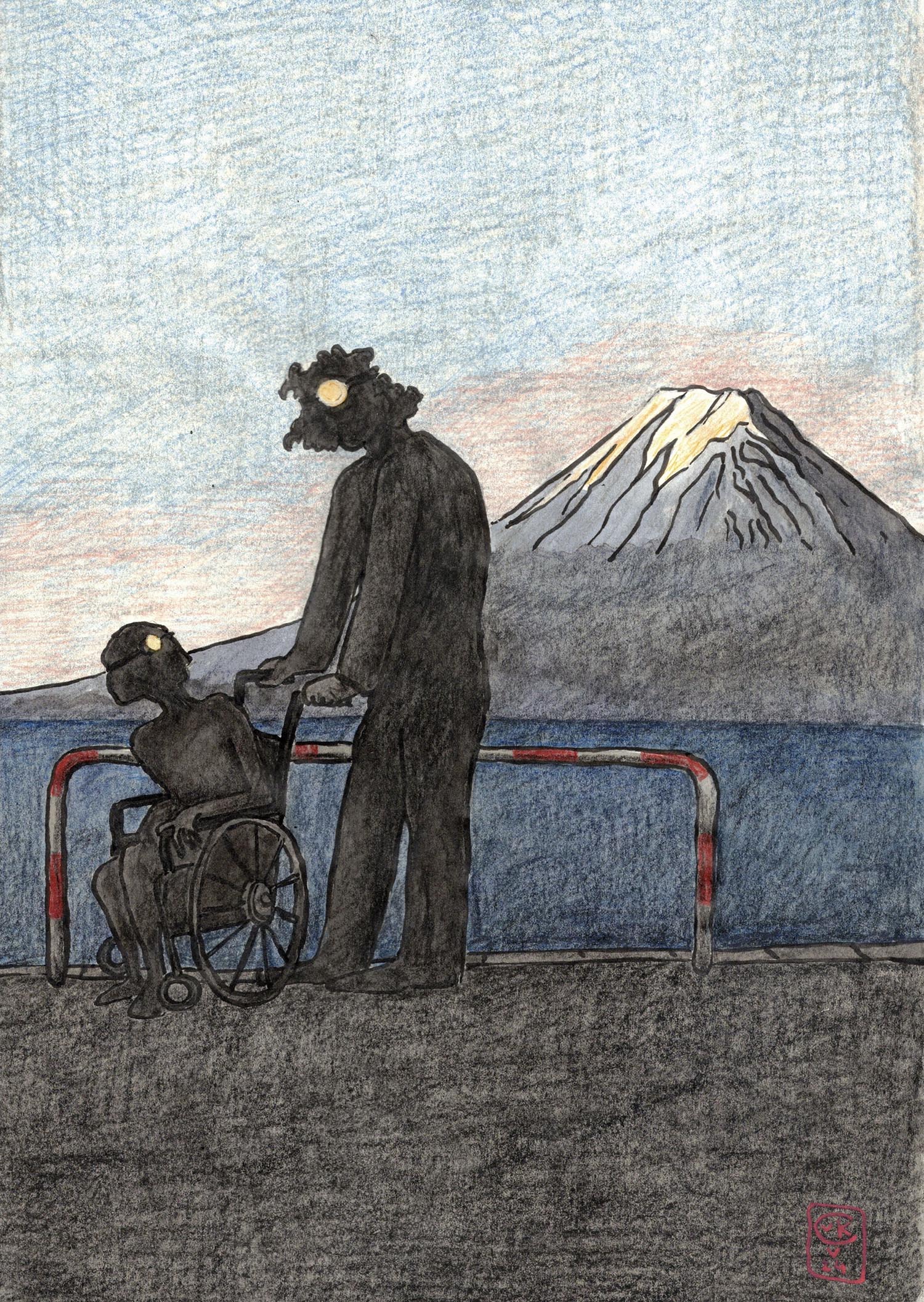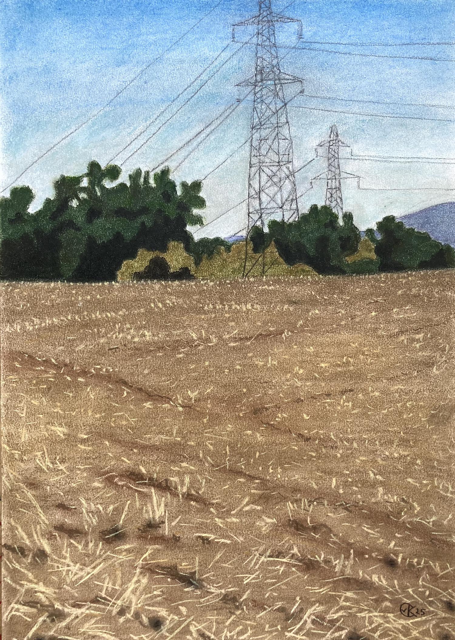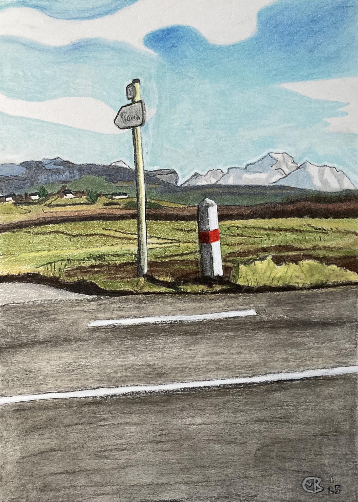 Ces dernières années, j’ai beaucoup travaillé autour de la nature. Depuis que je vis ici, je suis profondément fascinée par le paysage ; il est devenu un sujet central au cours de l’année écoulée. Le dessin a toujours occupé une place essentielle dans mon travail, et la ligne noire constitue pour moi un moyen stylistique presque indispensable. J’aime les couleurs intenses et, depuis quelques années, j’ai découvert le fusain et le pastel sec comme médiums. Il y a toujours un pot d’encre de Chine noire sur ma table de travail.
